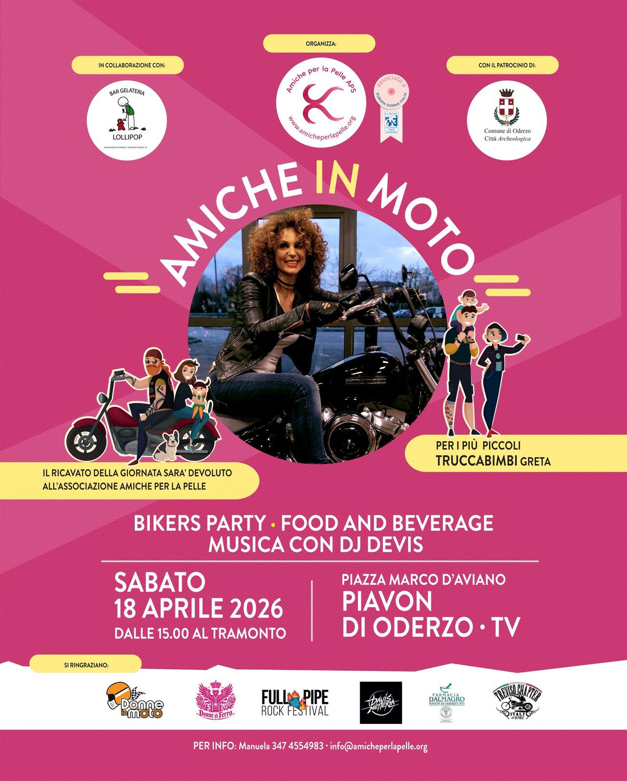 Un pomeriggio all’insegna della musica, del divertimento e della solidarietà con il Bikers Party, evento organizzato dall’associazione Amiche per la Pelle APS, con il patrocinio del Comune e in collaborazione con il Bar Gelateria Lollipop.