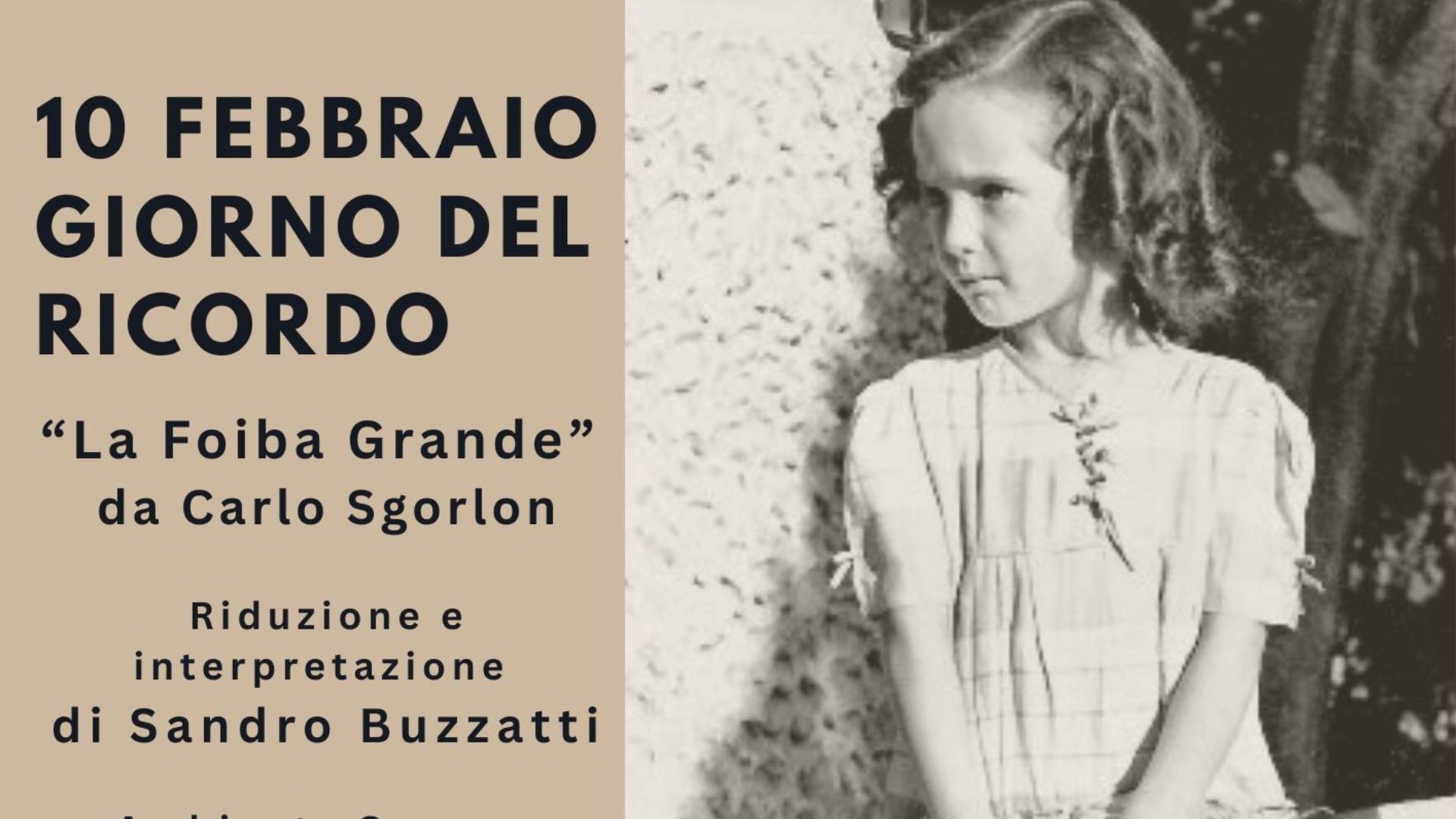 L'Ufficio Cultura del Comune di Oderzo organizza un appuntamento presso Palazzo Foscolo: ''La Foiba Grande'' da Carlo Sgorlon, con riduzione e interpretazione di Sandro Buzzatti e ambiente sonoro di Nelso Salton.