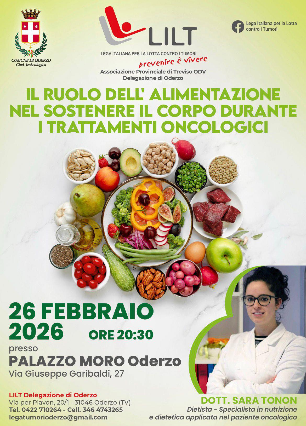 LILT Delegazione di Oderzo organizza un incontro dedicato all'alimentazione nel paziente oncologico con la Dott.ssa Sara Tonon, dietista specialista in nutrizione e dietetica applicata nel paziente oncologico.