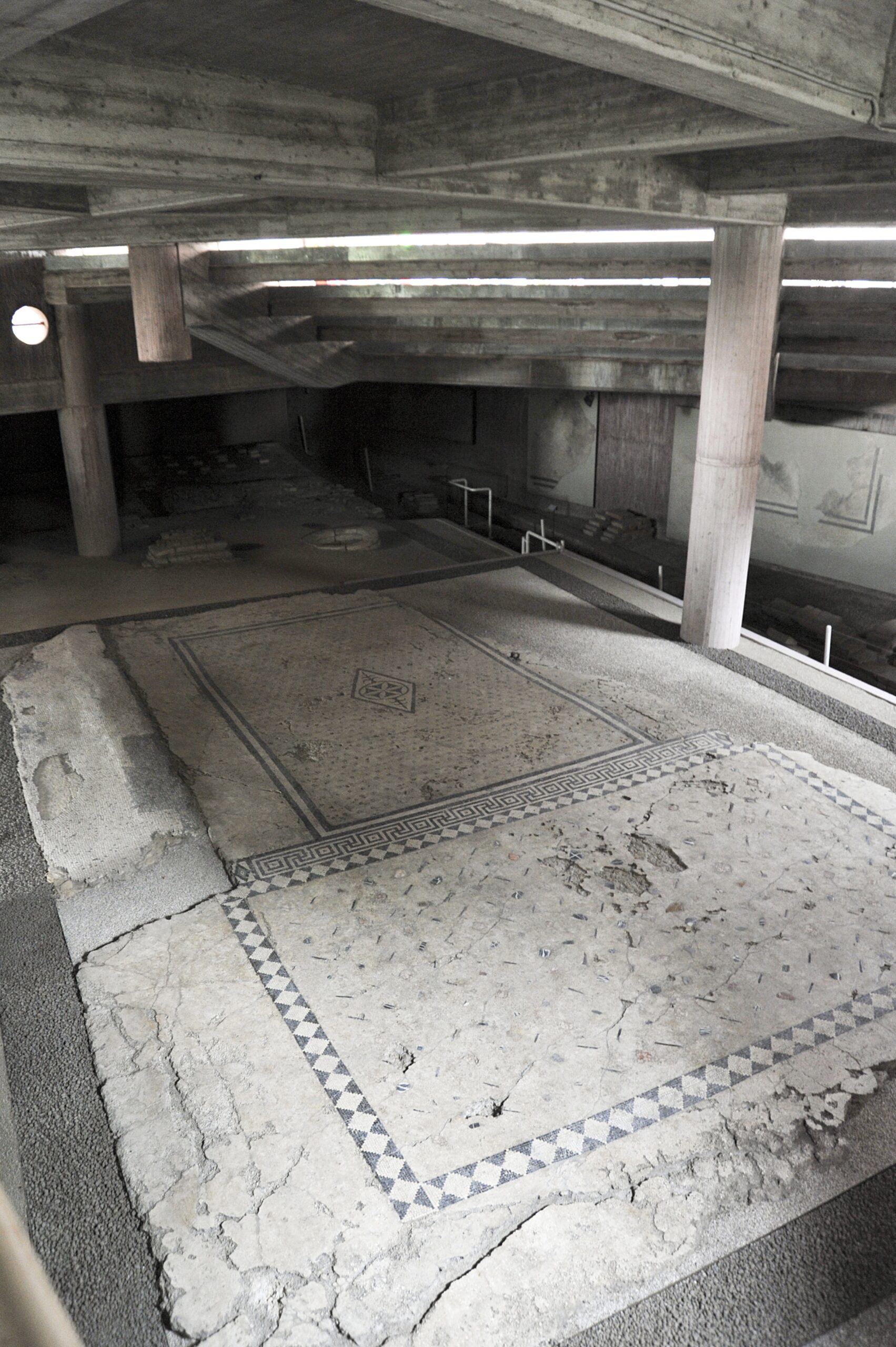 Lungo Via Mazzini sono visibili alcuni ambienti di una domus anticamente ubicata all’angolo dei due maggiori assi stradali della città. Delle strutture musealizzate in situ, databili in età augustea (fine I sec. a.C. – inizi I sec. d.C.), si distinguono alcune pregevoli pavimentazioni musive e in battuto bianco con inserzioni di tessere multicolori, oltre che i resti di un ambiente con riscaldamento a ipocausto, riferibile al settore termale della casa.